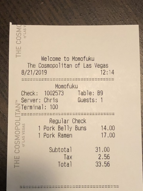 momofuku Las Vegas お会計
