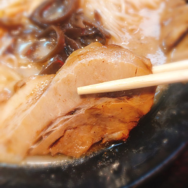 トッピングのチャーシューは薄切りでスープにしみているのですが、後味に若干臭みが強い感じがしました。