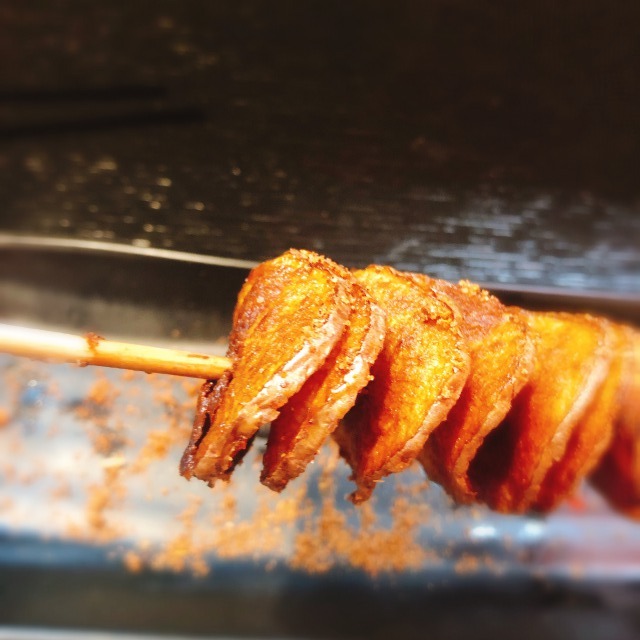 ポテトをまるごと1個、らせん状にカットし揚げたトルネードポテト。