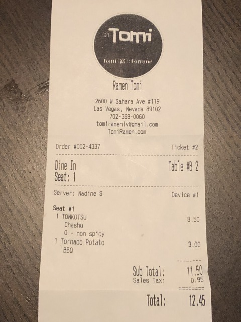 トミラーメンはパレスステーションカジノの向かい、サーカス・サーカスホテルからも近いラーメン屋です。