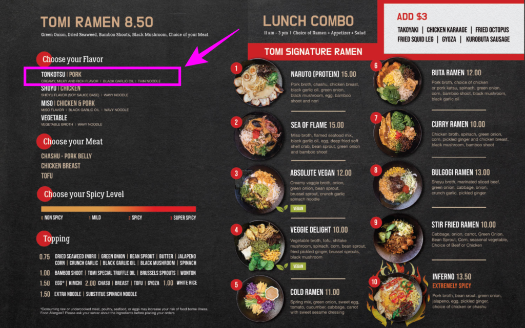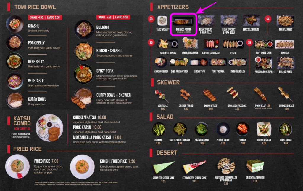 おそらくラスべガスのラーメン店でこんなユニークなサイドメニューはトミラーメンだけでしょう。