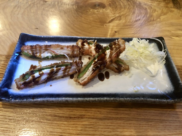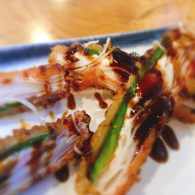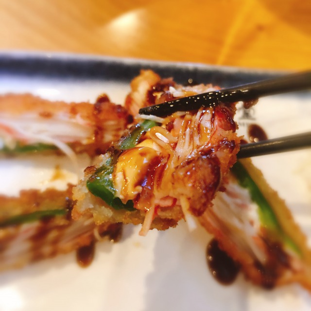 カニカマとハラペーニョ、チーズをはさんでカラッと揚げています。