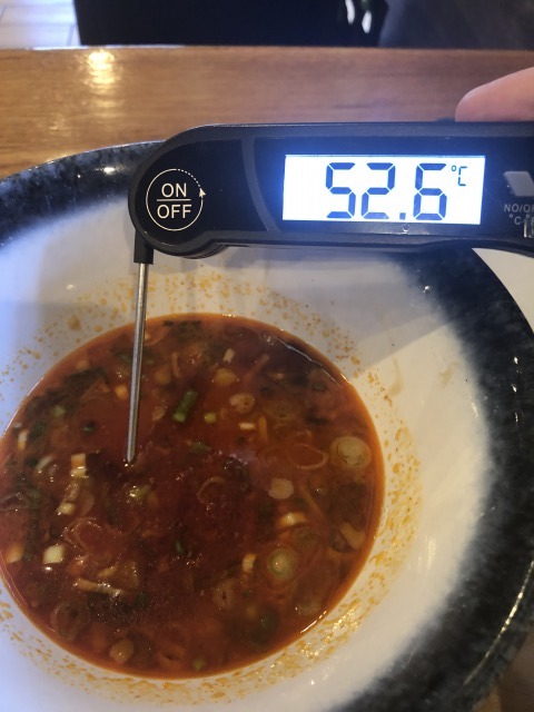 今回はつけ麺のスープになりますが、52.6℃は今まで16店もラーメン屋を周りもっともヌルい結果に。