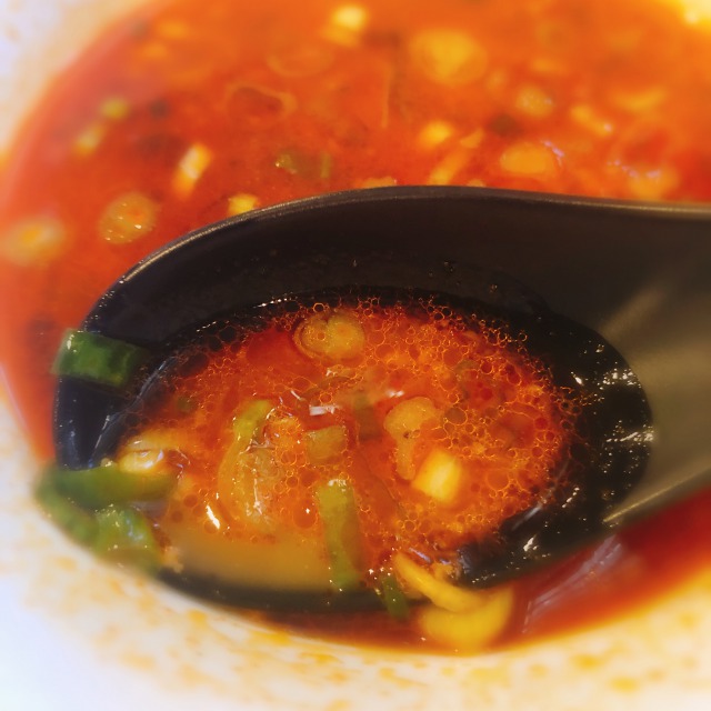 味は担々麺のスープに近いです。あとから口の中に辛さがやってきます。