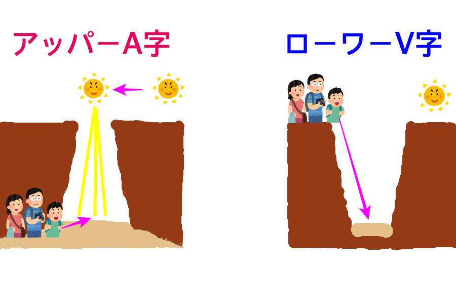 | 1. カタチの違い | A字 | V字 |