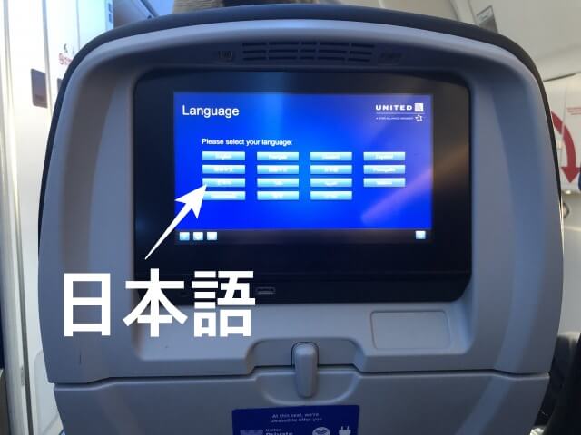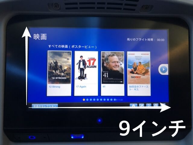 ユナイテッド航空エコノミー席には全席9インチのモニターがついています。