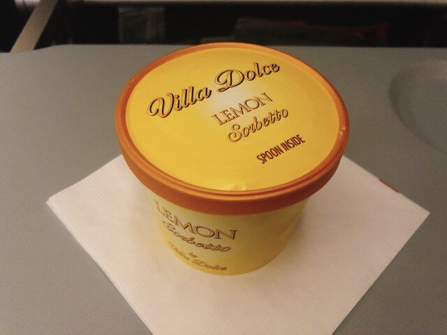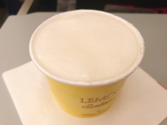 ちなみにサンフランシスコ→成田のときはレモンシャーベットが出ました。