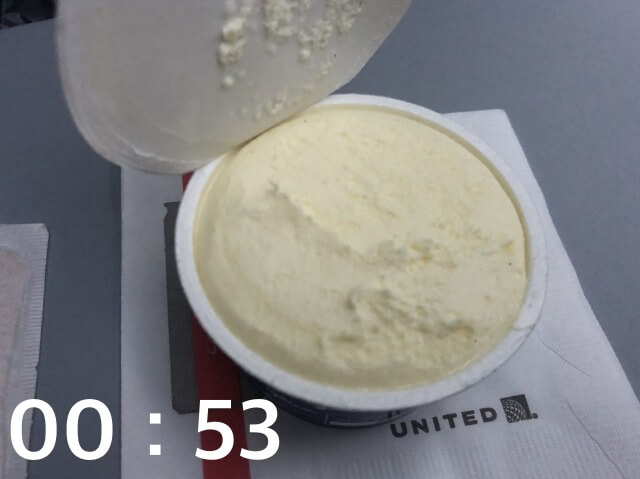 ユナイテッドの東京〜サンフランシスコ間は毎回アイスクリームが出るようです。