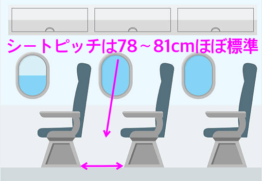 シートピッチ(足を伸ばせる前後の空間)は標準的な長さで特に狭さは感じませんでした。