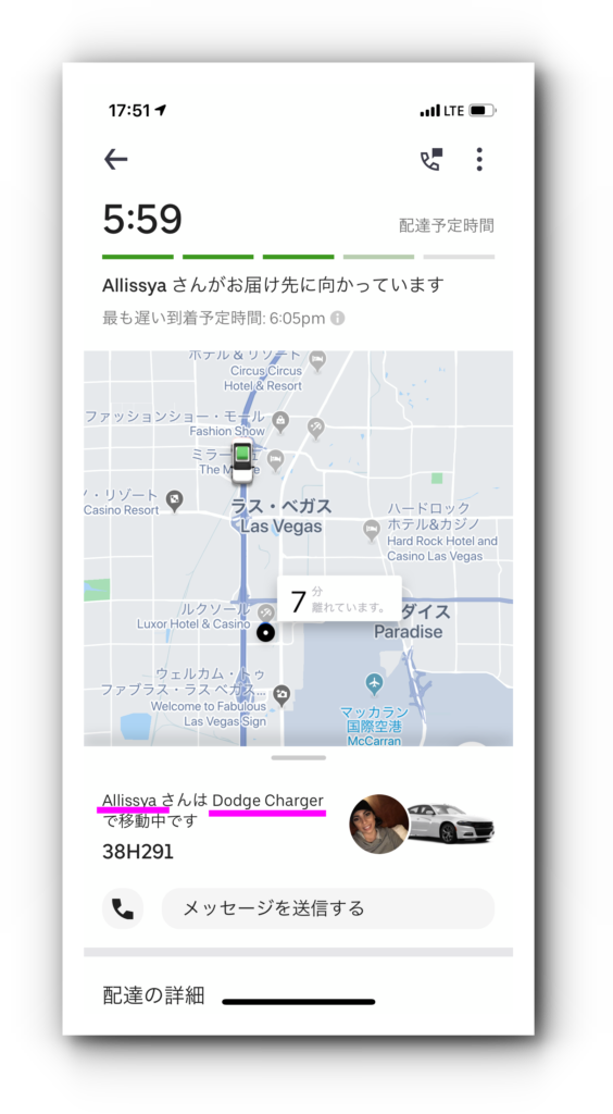アプリでUber Eatsドライバーの情報が通知されます。