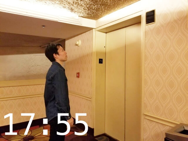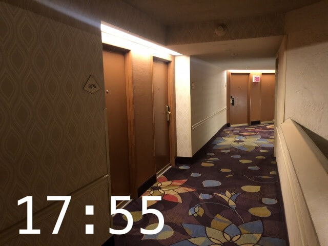 Uber Eats到着まで5分前になりましたので、ここで受け取り準備のためルクソールホテルの部屋を出ます。