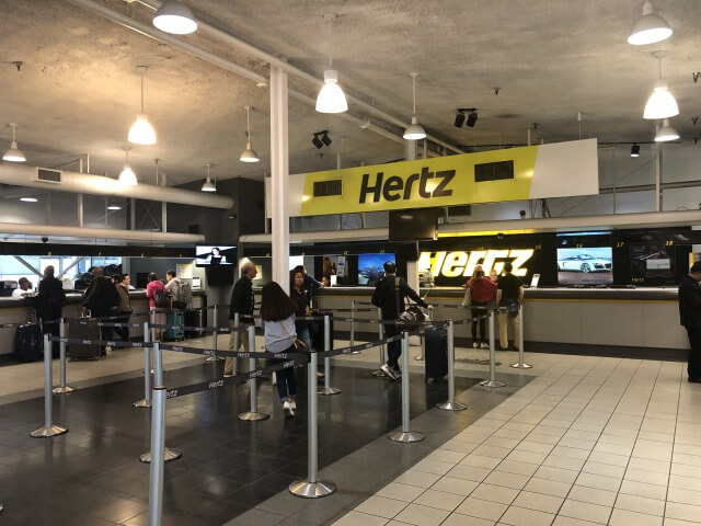 各空港ターミナルを周る点、車や信号の数が多い点からハーツレンタカーの営業所まで15分ほどかかりました。