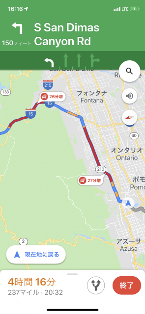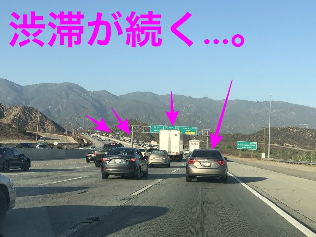 ロサンゼルスを完全に出て郊外を移動中、当日は金曜日のため渋滞がさまざまな場所で発生していました。