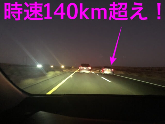 制限速度は75マイルですがほぼ全車80マイルで運転しています。中には90マイル近くスピードを出す車も!
