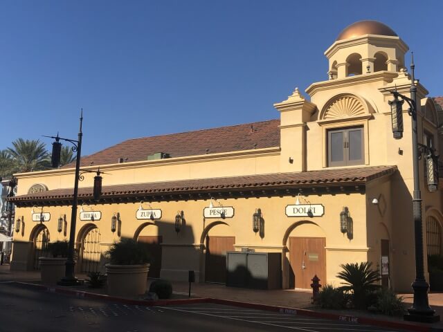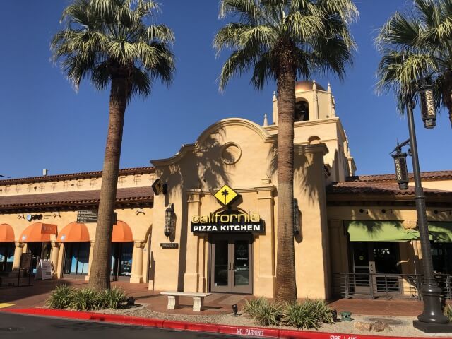 タウンスクエア園内入り口の一番目立つ場所にカリフォルニアピザキッチンがあります。