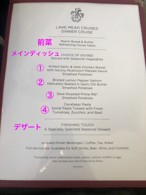 乗船料と食事付きで60ドルのため、ラスベガスホテルの食事とほとんど変わらず料金は決して高くありません。