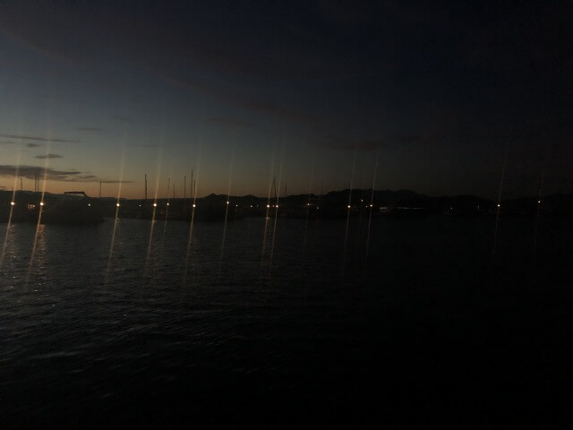 港と違い、湖のため陽が暮れると周りはほとんど灯りがありません。