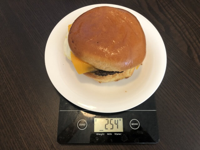 そこで当日食べた2つのバーガーの重さを計測しました。
