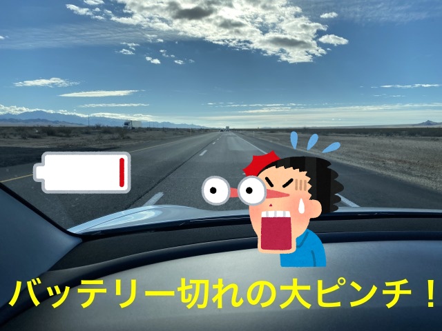 この時は時速80マイルで走行すると通常よりも3割増でバッテリーが減ることをしりませんでした。