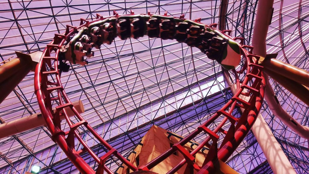 ストリップ通りからだと、ジェットコースターが一部しか見えないため、乗車時間は短いのかと思いきや長さは3分を越えます。