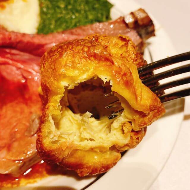 さらにヨークシャー・プディング(厚めのシュークリーム皮のようなパン:写真右下)がもれなく付いてきます。
