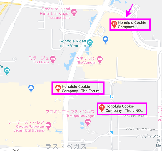 2020年2月現在ラスベガスにはホノルルクッキーカンパニーが3店舗あります。