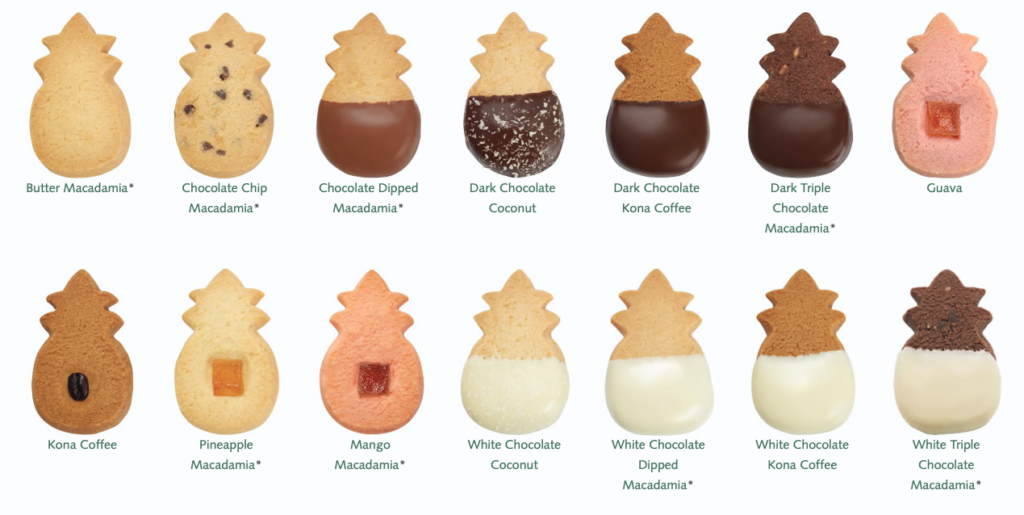 チョコレートがディップしてあるタイプやハワイ名産のコーヒー、コナ・コーヒーフレーバーが特に人気があります。