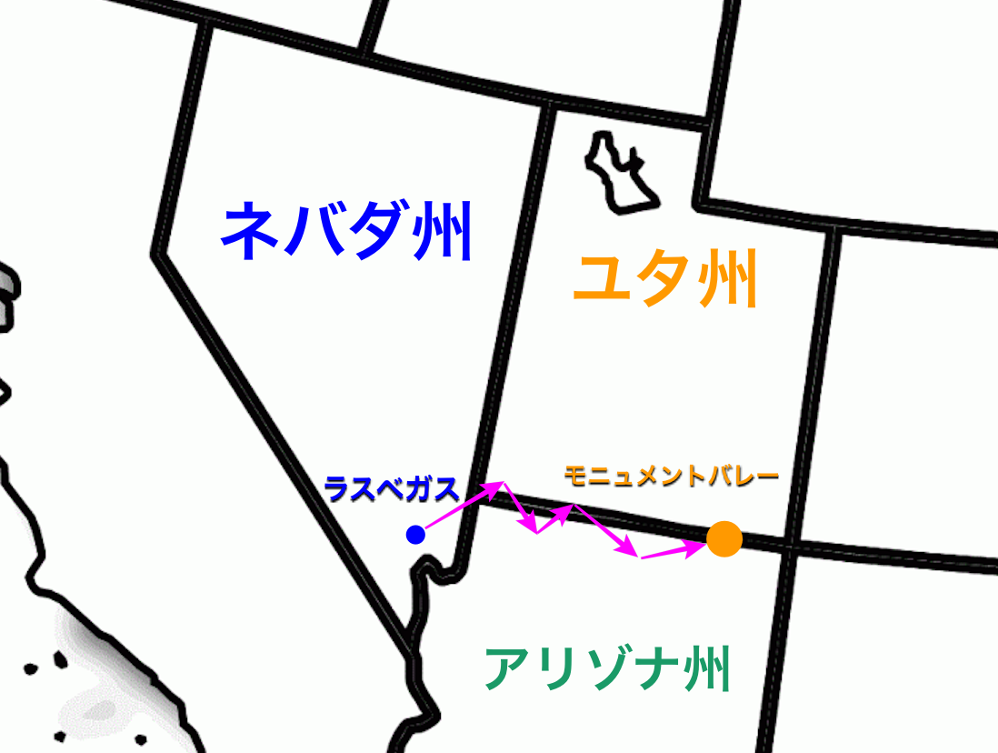 ラスベガスからモニュメントバレーまでの道のりには何度も時差の変更があります。