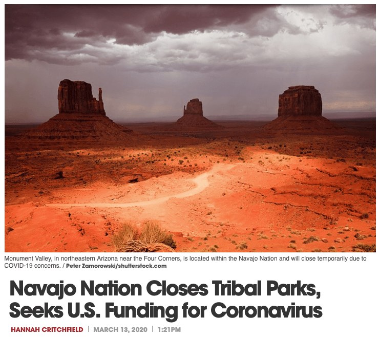 ナバホ政府は非常事態宣言を発令し、ナバホトライバルパークの閉鎖を決定。