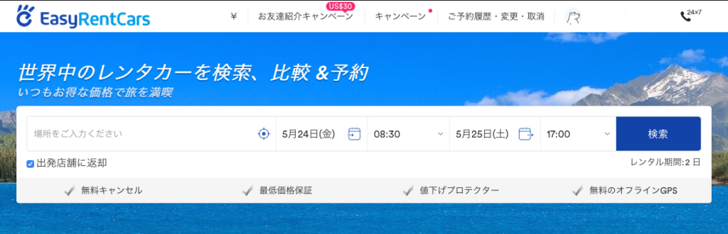 日本語で予約できるレンタカー比較サイト |