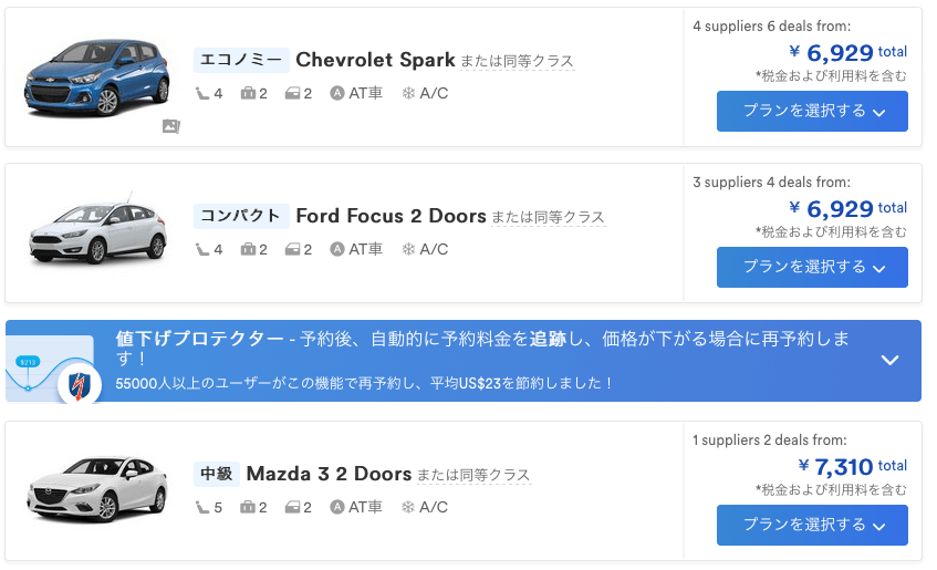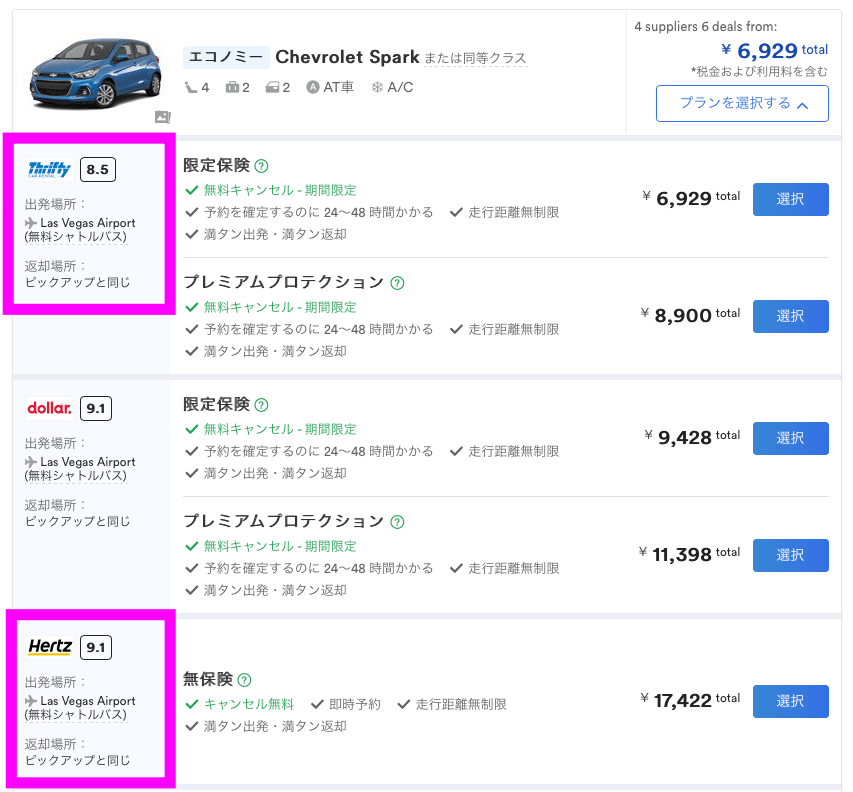 - 米国17社のレンタカー会社を瞬時に比較