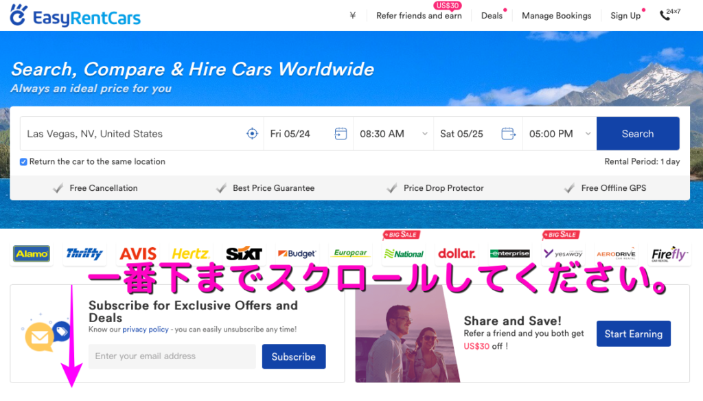 - 直接レンタカー会社の公式サイトから予約する